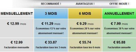 Je vous laisse consulter le tableau des prix. La remise va de 13% à 38% sur l'engagement annuel, ce qui n'est pas mal du tout.