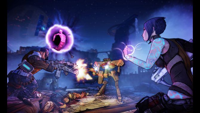 Bien entendu, les chances de toucher et la force des armes dépendent aussi d'un paquet de statistiques qui vont conditionner votre façon de jouer. C'est là qu'est le côté RPG car la qualité et le niveau de l'équipement se montrent primordiaux. Il faudra sans cesse ramasser du nouveau butin (loot) pour gagner en puissance. Les armes sont plus variées qu'avant et vous verrez vite que certaines marques ne collent pas du tout à votre style. Par exemple, ceux dont les projectiles sont lents, ou ceux qui s'utilisent comme une grenade quand ils sont rechargés. Vous préférez quoi ? Un chargeur plus conséquent ? Au choix un tir plus rapide, ou plus puissant ? Un taux d'attaque élémentale plus élevé ? À ce propos, à l'électricité, la corrosion, le feu et l'explosion vient se rajouter l'élément Slag, qui rend les cibles (ou vous-même) plus vulnérables aux autres types de dégâts. N'allez pas croire que c'est gadget : c'est très efficace et parfois incontournable. Côté protection, on retrouve les boucliers qui sont à présent un peu plus variés aussi dans leurs effets secondaires. Quant à la barre de vie, vous verrez qu'il est bien moins aisé qu'auparavant de la garder pleine en permanence !