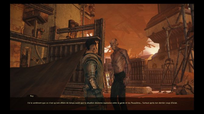 Rapidement, Roy va flairer un complot politique. Pour continuer, il faudra choisir ses alliés et c'est là que Mars : War Logs impressionne, avec un embranchement aux conséquences importantes. Cela rappelle un peu The Witcher 2 d'ailleurs, en un poil plus simple. De plus, même si les quêtes secondaires se montrent assez basiques, c'est toujours l'occasion de prendre des décisions morales dont les répercussions se sentiront ici et là dans le scénario. Rien qui mette sur le cul, mais c'est agréable. Le jeu propose aussi un petit système de réputation peu utile, qui se base surtout sur le choix de Roy d'achever ses victimes ou non. S'il le fait, il passe pour un salaud, mais ça lui fait du fric (puisqu'il extrait des corps du Serum, la monnaie locale qui sert d'ailleurs à fabriquer des soins). Sinon, il ne fait que mettre tout le monde KO. Un peu violemment, certes, mais ils s'en remettront !