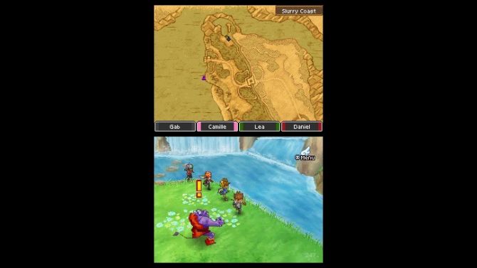 Et on va en avoir, de l'action. Tout juste sorties de la ville d'Ablithia, des monstres errants apparaissent aléatoirement sur la carte du monde. L'occasion de mettre les choses au point : "c'est comme les combats aléatoires, finalement", grommelle Amandine, "on a juste quelque secondes de plus pour décider si on attaque ou si on fuit...". Effectivement, la jouabilité de Dragon Quest IX n'a absolument rien à voir avec celle d'un action-RPG, encore moins d'un MMO, comme aurait pu le croire de prime abord. Outre le fait que les combats se déroulent toujours au tour par tour (comme les précédents), la présence des ennemis sur la carte n'est pas garantie. Et la décision d'engager ou pas le combat n'octroie pas systématiquement de bonus. En revanche, l'"aggro" semble fonctionner : mon mage de moins haut niveau semblait attirer plus facilement les bêtes avant de gagner un peu d'expérience.