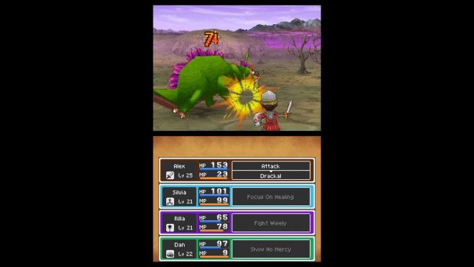 Le début de l'aventure de Dragon Quest IX se compose donc d'une série d'épisodes qui sont l'occasion de croiser des personnages hauts en couleurs. Mais attention, contrairement à un jeu de rôle classique, aucune de ces rencontres ne vous accompagnera dans votre périple ! Level-5 ayant volontairement mis l'accent sur le jeu à plusieurs, si vous souhaitez vous faire seconder dans votre quête, il vous faudra recruter des personnages générés aléatoirement ou créés selon vos désirs. Ne faites pas comme Amandine qui s'est jetée à corps perdu dans les combats, seule ! Là, elle me glisse que ça a quand même fonctionné pour elle. "C'est parce que le jeu est plus facile", lui réponds-je presque sans mauvaise foi. Car au début tout du moins, Dragon Quest IX se montre bien moins punitif que ses prédécesseurs.