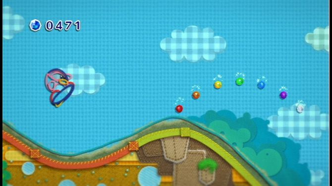 Soyez prévenu : Kirby ne peut pas mourir. Jamais. Que vous tombiez, que vous vous cogniez contre un obstacle... rien n'y fait. La laine résiste à tout. Adieu "Game Over". En revanche, une légère sanction existe tout de même. En effet, au fil de l'aventure vous collecterez des diamants, des perles et autres pierres brillantes. A l'image d'un bon vieux Sonic, en étant touché, vous perdrez une partie de ce butin (que vous pourrez néanmoins vite récupérer). Mais une fois de plus, tout cela n'est finalement qu'accessoire. Vous n'êtes pas obligé de rincer les niveaux pour les franchir, et encore moins de finir chaque niveau pour passer au monde suivant. La progression dans Kirby se veut tout sauf frustrante. Le but ? Prendre un plaisir visuel et ludique simple, direct.