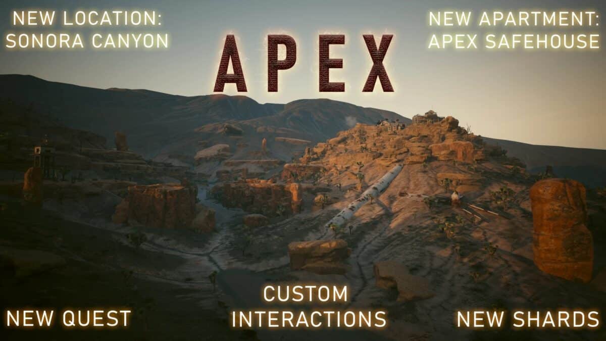 Once again, the Cyberpunk 2077 modding community proves its worth, as the game just received the first installment of a series of mods designed to introduce new content for CD Projekt’s futuristic RPG. Titled “APEX – Sonora Canyon and Safehouse,” this mod, created by Nox and MrBilL61 on Nexus Mods, adds a new area to the Badlands, enriching this region with new locations to explore as well as an additional safe house unlocked through a brand-new quest.