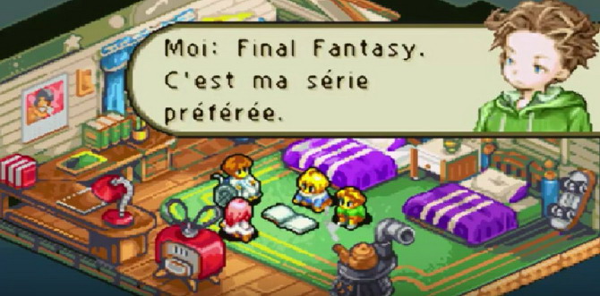 Dans cette perspective, les fictions élaborées par les jeux vidéo, et dans lesquels les personnages sont confrontés à des figures parentales, déploient ces deux schémas, de façon plus ou moins prononcée. Pour ne prendre qu'un exemple particulièrement éloquent, le personnage de Mewt dans Final Fantasy Tactics Advance (GBA), traumatisé par la mort de sa mère et la déchéance consécutive de son père, bâtit tout un monde imaginaire qu'il se refuse à quitter et dans lequel ses deux parents se retrouvent chevalier et reine. Au-delà du métadiscours qui se déroule en filigrane (on apprend que le monde imaginé par Mewt est influencé par sa pratique des jeux vidéo... dont Final Fantasy !), ce personnage correspond parfaitement au schéma de "l'enfant trouvé" évoqué par Marthe Robert.