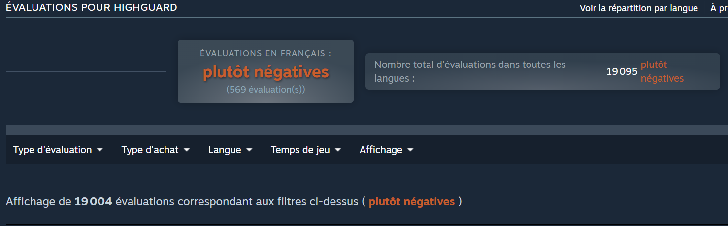 À l'heure où ces lignes sont écrites, le jeu a une moyenne de notes plutôt négative sur Steam pour plusieurs milliers d’évaluations à l'international. La plupart des joueurs ayant déposé un avis n'ont joué que quelques minutes, une petite heure tout au plus. Les avis plus mitigés ou positifs ont quant à eux donné plusieurs heures de leur temps en général. Est-ce que cela veut dire que Highguard devient bon si on lui laisse le temps ? Pas nécessairement, puisque les avis dithyrambiques ne sont pas plus éclairés que les notes extrêmement négatives à ce stade. On est encore dans l'effervescence, mais malheureusement, si pour certains jeux ça peut porter ses fruits, pour Highguard le retour de manivelle est brutal.