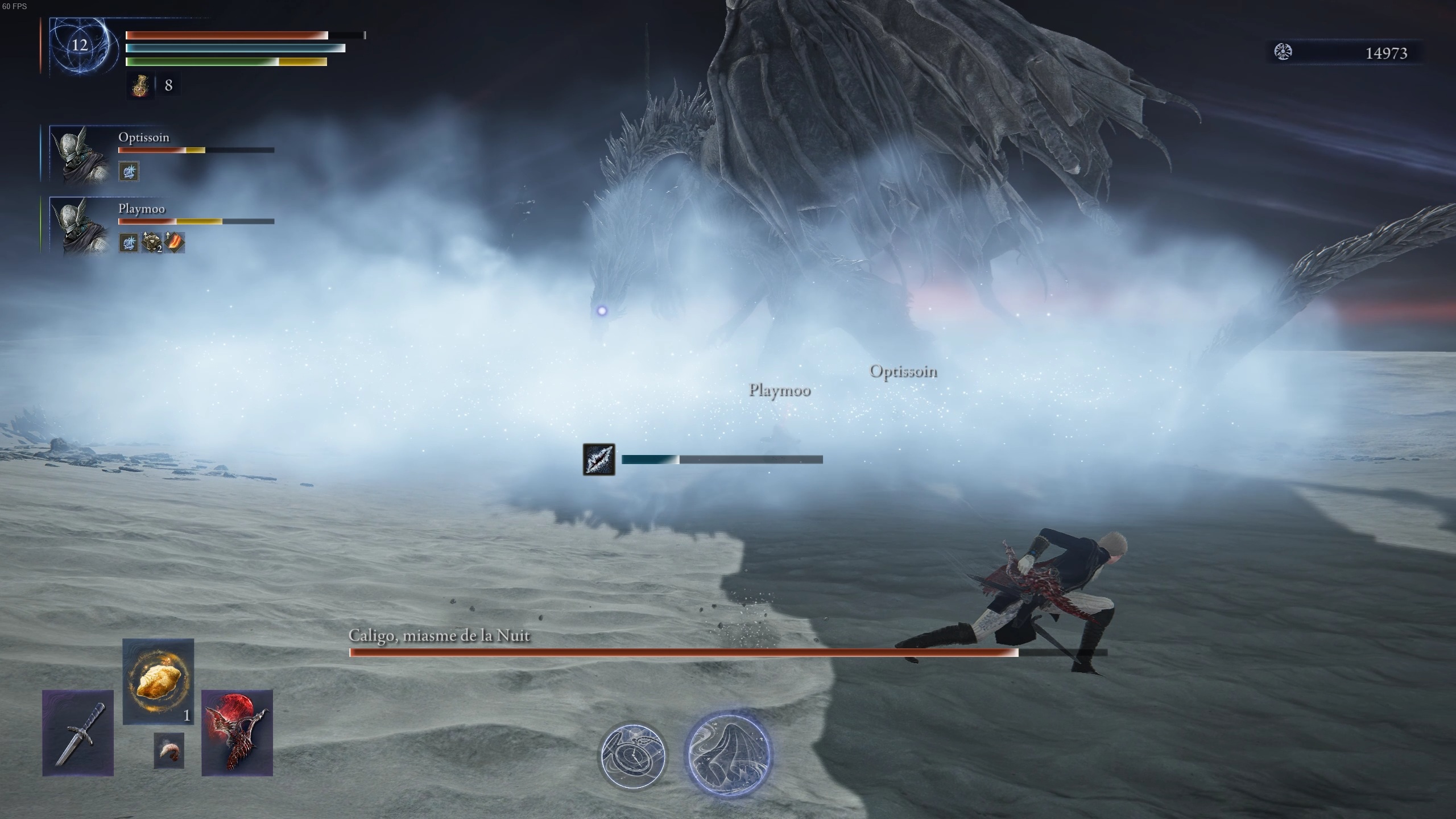 - Comme les dragons d’Elden Ring, les attaques de base de Caligo comportent des coups de griffe, de dents et de queue quand il est au sol. Un moment idéal pour le frapper au corps-à-corps et l’étourdir