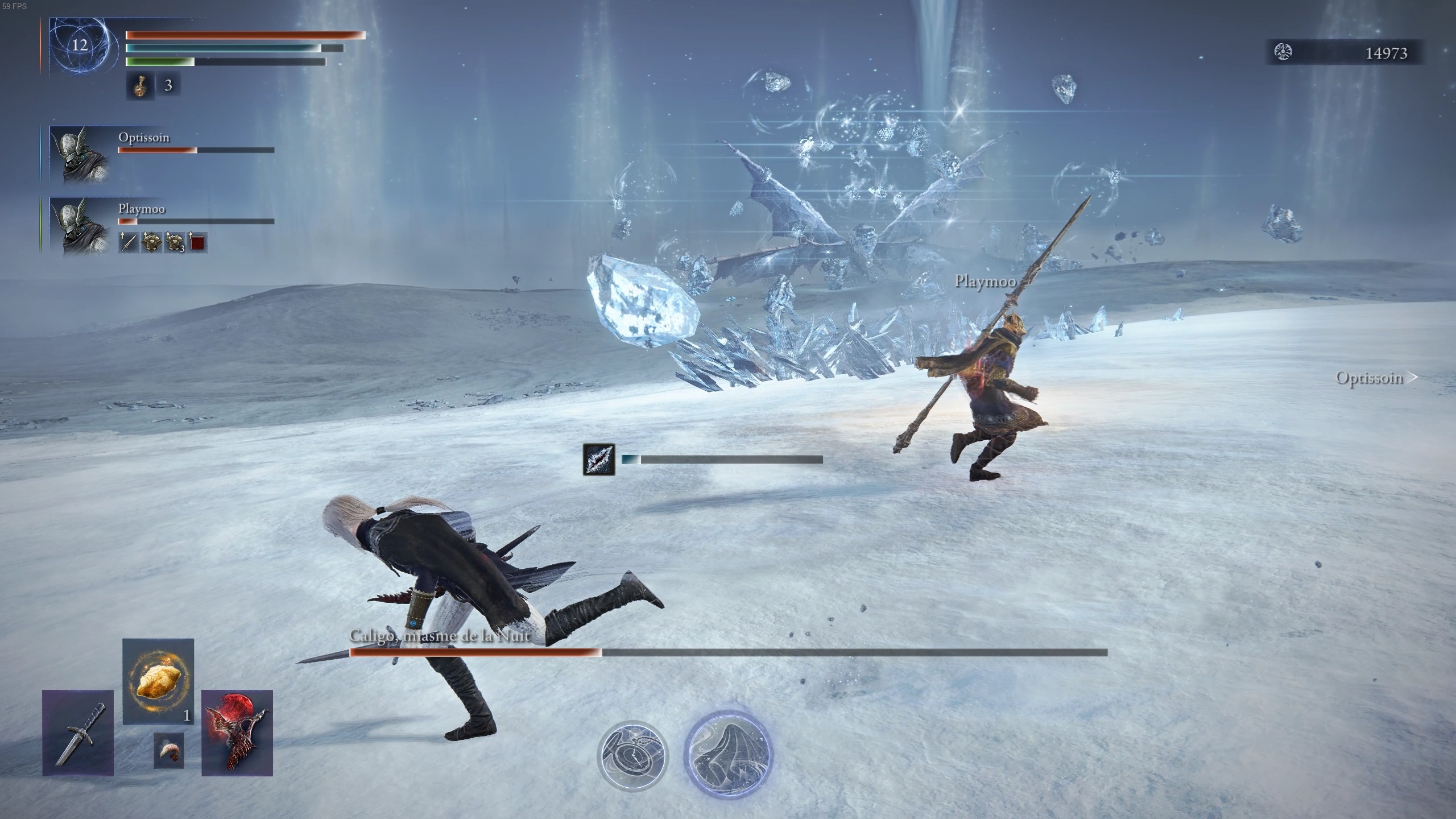 - À un certain seuil de sa barre de vie, il disparaîtra dans la brume pour déclencher sa première attaque ultime, qu’il pourra répéter ensuite au fil du combat. Il faudra alors trouver un pilier de glace pour se cacher derrière, au risque d’être pris par une tempête de gel vous congelant instantanément