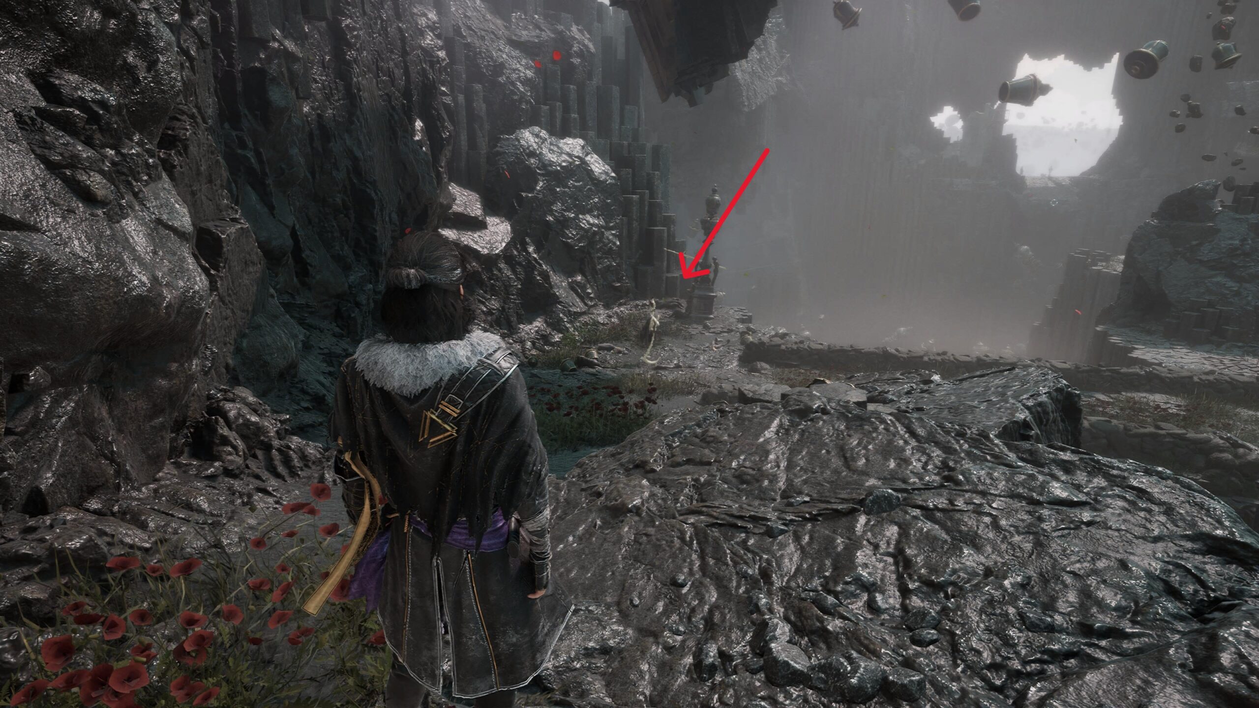- Rendez-vous aux Falaises Rochevague, trouvez et éliminez le Cultiste qui se trouve dans la seconde portion du niveau (voir image ci-dessous) pour récupérer l’arme Chation.