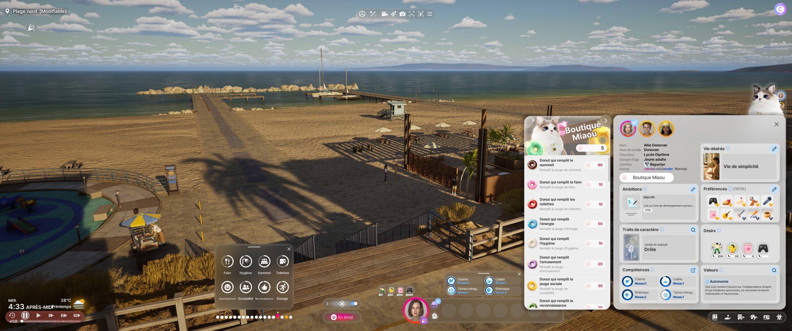 Plus concrètement la boutique Miaou sert à acheter des Donuts aux pouvoirs spéciaux, que vous pouvez donner à vos Zoi. Ces derniers permettent de profiter de différents bonus pour par exemple booster une humeur, augmenter plus vite une compétence ou, plus cheaté encore, ne plus avoir besoin de se soucier d’un certain besoin à vie. Vous voulez avoir un personnage qui n'ait plus jamais envie de dormir ? C’est possible avec ces pâtisseries aux effets redoutables. Attention toutefois, contrairement aux codes de triche d’inZoi qui vous permettront normalement de faire la même chose à leur arrivée, il va falloir cravacher pour pouvoir acheter les Donuts ultimes.