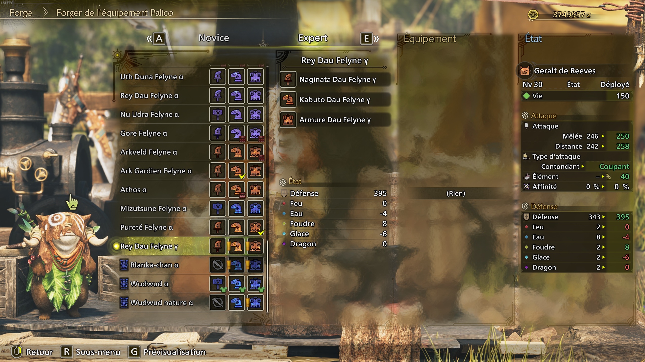 - Récompenses : un ticket spécial pour une pièce d’équipement unique pour le Palico