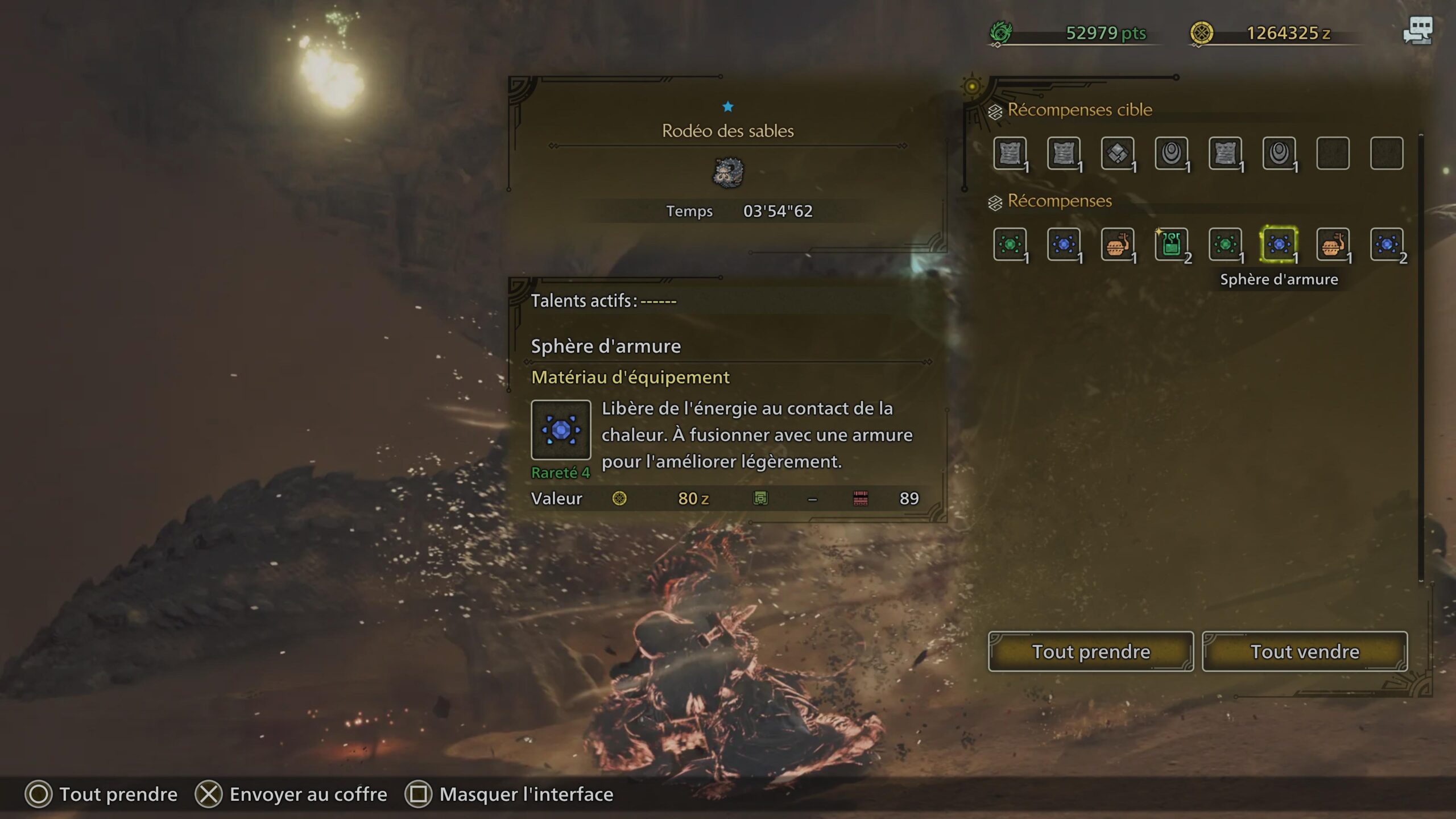 - Récompenses : Des Sphères d'armure et Sphères d'armure +