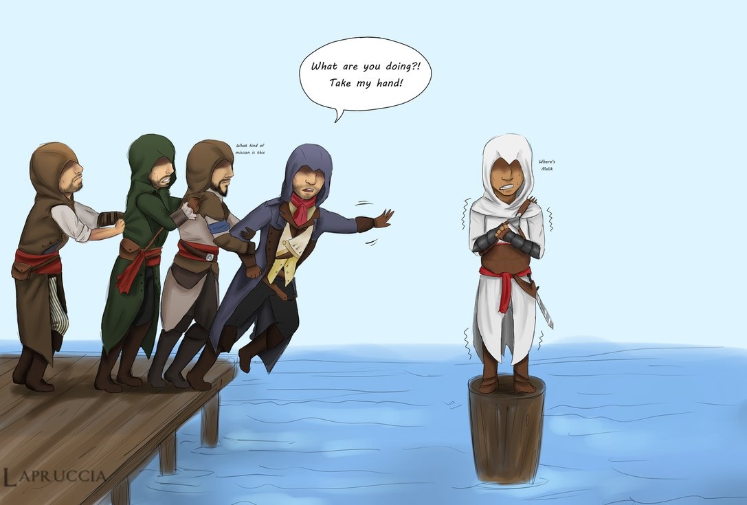 C'est ce que le jeu veut faire comprendre aux joueurs, et cela passe tout d'abord par l'intermédiaire d'Arno qui s'impose comme un véritable Assassin qui devra tout comme Altaïr savoir grandir et mûrir tout au long de sa quête. Un Assassin qui se bat pour une cause bien réelle et sérieuse, mêlant Histoire et vie personnelle. Arno, qui malgré son introduction toute récente chez les Assassins dans Unity, prend déjà en considération le Credo tout en le remettant en question, à l'instar du sage Altaïr à son époque. Il y a en effet un dernier point très important du "Assassin's Creed" que nous n'avons pas encore abordé...