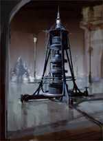 La Garde Urbaine a ainsi installé partout des pylônes et des portails foudroyants qui sont censés réguler les mouvements des populations et surtout s'assurer que les geignards et les quarantaines de plus en plus nombreuses sont bien circonscris aux zones concernées. Tout corps vivant non enregistré préalablement sur ces appareils sera vaporisé en une seule décharge de foudre, qu'il s'agisse d'un rat porteur de peste ou d'un malheureux citoyen. Si leur efficacité macabre est confondante, les pylônes et portails consomment en revanche beaucoup d'huile de baleine ; il suffit de quelques décharges pour que leurs réservoirs s'épuisent.
