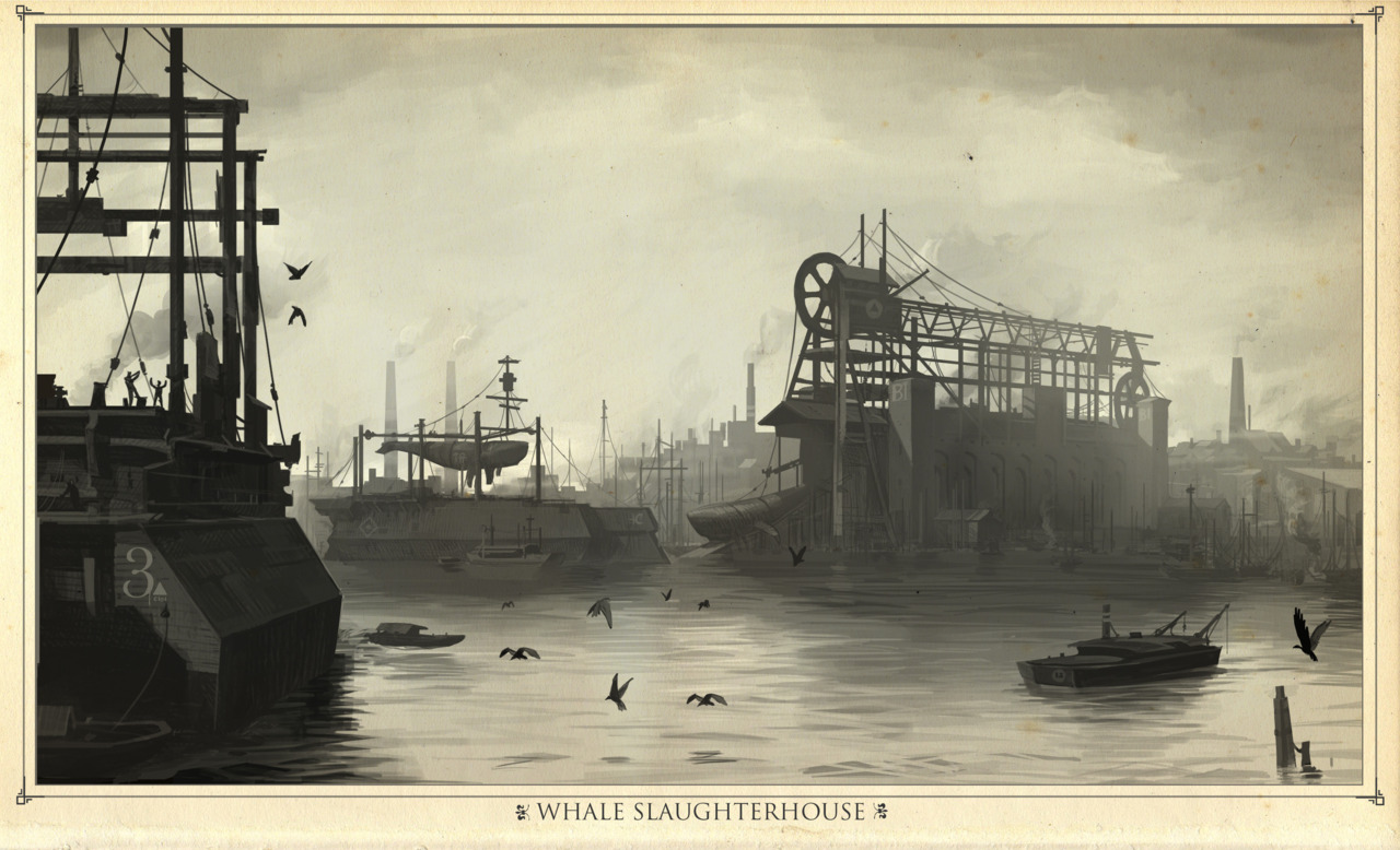 C'est avec la découverte des propriétés énergétiques de l'huile de baleine, il y a déjà plus d'un demi-siècle, que la révolution industrielle s'est mise en marche. Anton Sokolov est notamment connu pour avoir créé de nombreux objets et mécanismes utilisant la fameuse huile, récoltée des corps massifs de ces animaux marins pêchés au large des îles de l'Empire. Ceux-ci se déplacent généralement en groupe, les techniques de pêche nécessitent par conséquent d'isoler les individus les plus gros avant des les harponner.