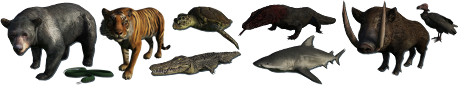 Les plantes sont variées et nombreuses, et serviront à confectionner diverses choses une fois récoltées. De même, diverses zones renferment des espèces animales variées : plus d'une trentaine d'entre elles, qui constituent une chaîne alimentaire locale constituée de nombreux prédateurs, terrestres ou maritimes. Tigres, sangliers, serpents, panthères, requins, dragons komodo, ours... ils offriront eux aussi des ressources exploitables, mais aussi des dangers bien plus sérieux que la flore.
