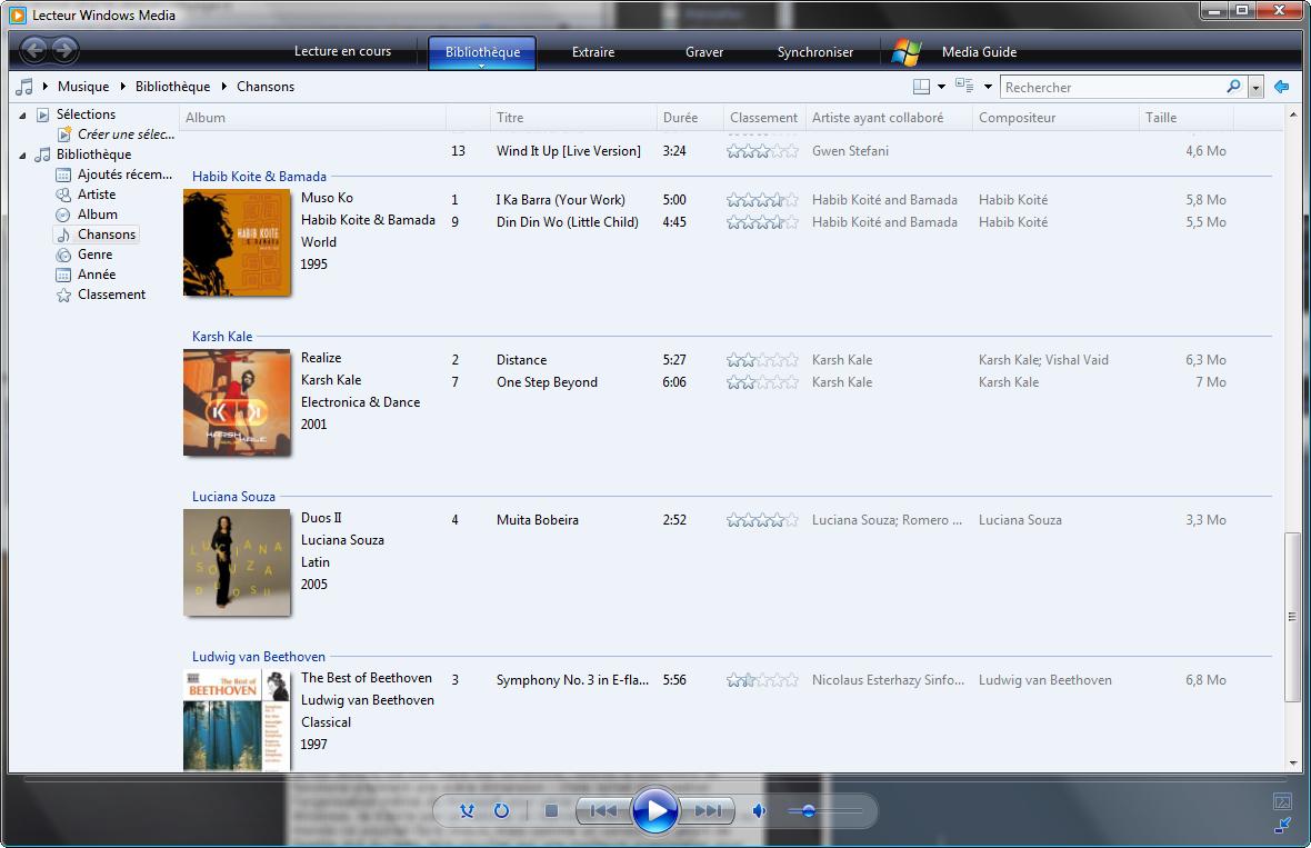 | Le nouveau lecteur Windows Media est agréable à utiliser. |