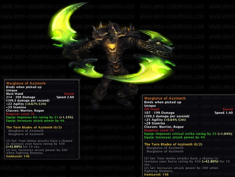 Nous voulions faire de nouveaux objets légendaires pour le dernier patch de Cataclysm mais nous voulions que cela ait un sens par rapport à l'histoire. Tous les dragons noirs ont été vaincus, c'est pourquoi vous avez ce "souvenir" des dragons noirs qui contacte certains joueurs pour restaurer leur pouvoir. Il était donc logique d'un point de vue historique que ce soient les voleurs qui soient concernés pour mener à bien cette mission "secrète" en toute discrétion. C'est pourquoi la récompense légendaire revient aux voleurs car ils auront aidé les dragons noirs.