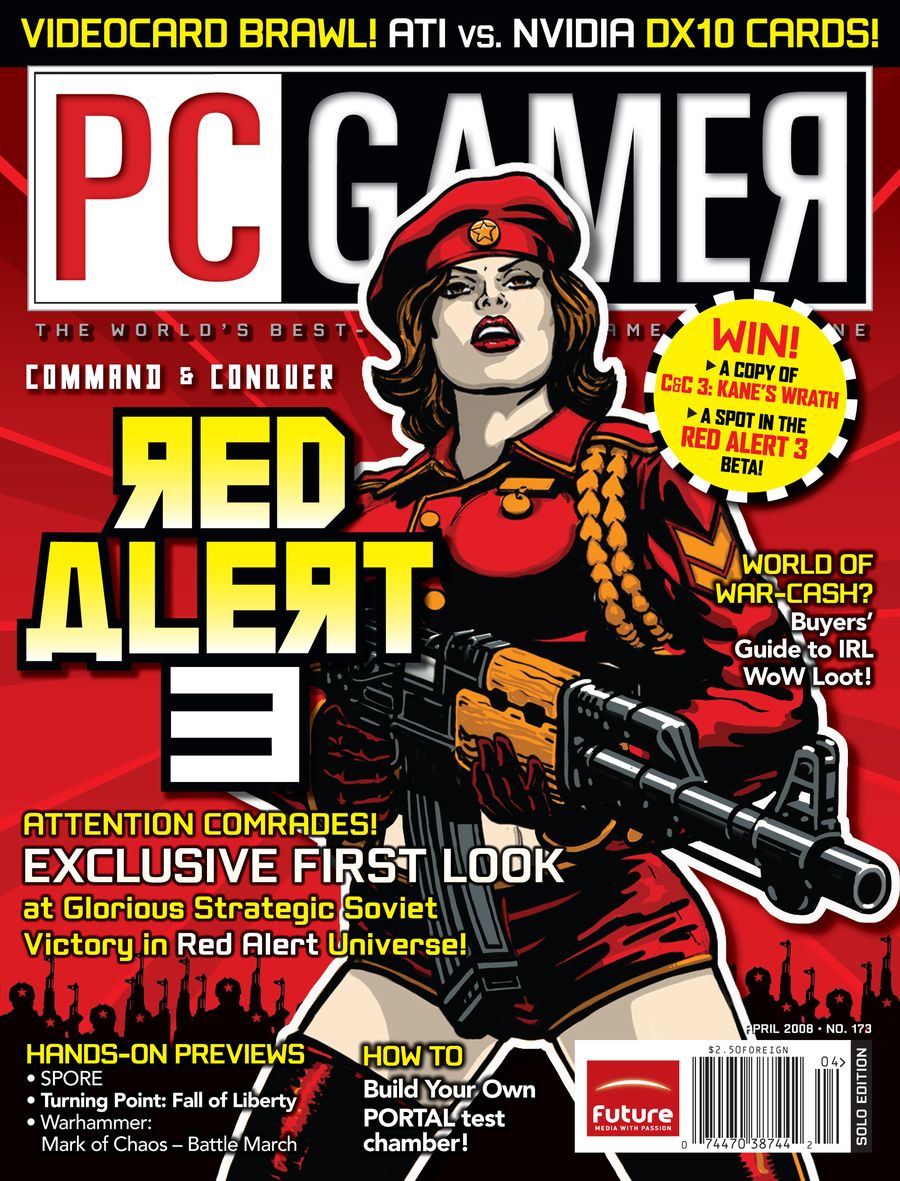 C'est le magazine PC Gamer qui révèle au monde effaré l'existence de Command & Conquer : Red Alert 3, nouvel épisode de la série spin off de, euh, eh bien Command & Conquer, avec sa prochaine couv'. Le numéro sortira aux iouesses le 4 mars, probablement avec les premières images et infos sur ce nouveau Ouile Tailleum Stouatédgie, ou RTS, ou encore, en français, stratégie temps réel. En attendant, on peut raisonnablement penser qu'il sortira sur PC, sinon, ce serait plutôt con de faire une couverture de magazine PC dessus. Mais rien n'exclut à l'heure actuelle une possible sortie sur 360, PS3, ou encore Lynx.
