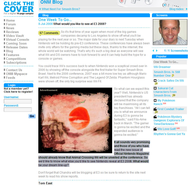 Dans la dernière édition du magazine officiel Nintendo british, une image teasing d'Animal Crossing a fait son apparition dans un dossier dédié aux annonces Wii du prochain E3... Doit-on en conclure qu'Animal Crossing Wii sera le jeu (ou l'un des jeux) destiné(s) aux "core gamers", et que Nintendo a plus ou moins promis ces derniers temps ? Hummm... S'il est accompagné d'un nouveau F-Zero, ou encore d'un nouveau Zelda, je signe tout de suite... Mais lui seul...