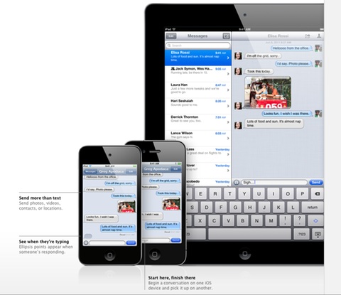 La seconde, elle concerne iMessage, un système complètement repompé sur la messagerie de BlackBerry. Cela permettra d'envoyer des messages (quelle surprise !) à tout possesseur d'iTruc. Pour les gamers, ça veut dire des possibilités de communication dans les jeux qui vont exploser, et pour pas un rond. Du reste, les opérateurs qui se gavent sur les SMS ne sont pas vraiment heureux, surtout qu'ils ont appris l'arrivée de cette fonction en même temps que tout le monde, pendant la conférence.