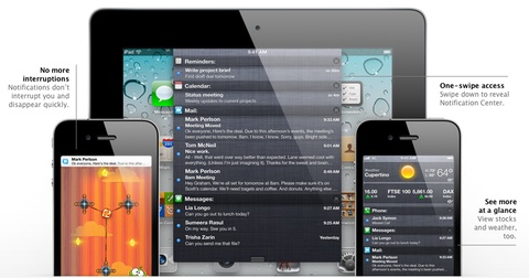 La première pour moi est le changement du système de notification. Pourquoi ? Bah mangez-vous une bulle de notification (SMS, Mail, etc.) du système actuel en plein record de Tiny Wings et vous allez vite comprendre... Le nouveau sera non-intrusif et beaucoup plus efficace. Un bandeau apparaîtra avec la classe habituelle des applications Apple pour vous prévenir, sans bloquer votre jeu et (presque) sans vous déconcentrer.