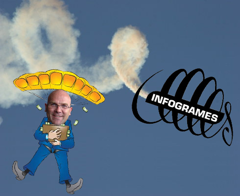 Sauf qu'un jour, oulala, ce fut la cata ! Tout parti en vrille ! L'action Infogrames se retourna telle une crêpe qui va cramer avant de se putréfier. Ce fut la descente vers un truc qu'on appelle l'enfer. Et il y fait chaud. Oui alors. Bruno il ne kiffait plus du tout. Même qu'il avait envie de partir loin loin pour retrouver son bonheur perdu. Alors Bruno il a démissionné. Il a quitté son navire, et là je peux vous dire qu'il avait pas trop le sourire Bruno. Ah non alors. Mais comme Bruno avait une bonne étoile, et que les gens qui l'entouraient, l'aimaient trop d'amour, ils ont décidé de lui faire un dernier cadeau. Même qu'on appelle ça un Golden Parachute. Un parachute tout en or massif comme on dit chez les français. Ça coûte combien un tel joujou ? Oh, bah, ça va, c'est pas trop cher... juste 4,76 millions de dollars.