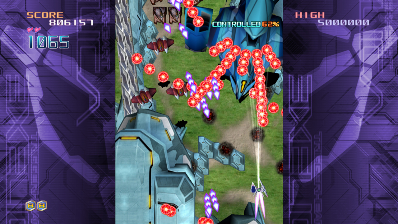 Le bon vieux shoot à scrolling vertical est un genre ancestral qui a toujours ses adeptes, une petite frange hard-core qui ne demande qu'à entrer dans "la zone" en se faufilant avec un petit vaisseau entre des centaines et des centaines de projectiles qui inondent l'écran, tout en shootant les ennemis bien entendu... On appelle cette sous-catégorie de Shmup le Manic Shooter d'ailleurs, si vous voulez tous savoir. Ou Danmaku en Japonais aussi... Bref, si vous en faites partie ou si vous êtes un gamer curieux, vous serez heureux d'apprendre la sortie, demain mercredi 27 février 2008 sur le Xbox Live Arcade (pour 800 points MS), de Triggerheart Exelica, un jeu développé par Warashi et sorti en 2006 dans les salles d'arcade nippones. Pour la petite histoire, il fait aussi partie des différents shoots qui on ressuscité la Dreamcast, puisqu'un portage est également sorti sur cette dernière, il y a seulement un an au Japon ! Il faut dire qu'en Arcade il tournait sur Naomi, la fameuse carte spécialement conçue par Sega pour adapter les jeux de l'Arcade à la Dreamcast en un claquement de doigts... Que de souvenirs émus, ma foi. Je vous laisse avec les images Xbox Live Arcade. Notez d'ailleurs que, si vos yeux experts ne peuvent le déceler, cette version sera graphiquement améliorée au passage. Cool.