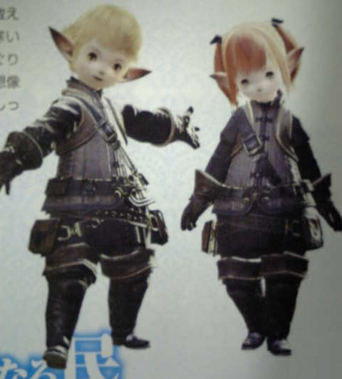 On passe enfin aux Elfes, les "Elvaans" de FFXI, baptisés cette fois "Erezen". Ils n'auraient pas trop de rapports avec les Hyuran, certainement parce qu'ils étaient déjà présents sur Eorzéa avant l'arrivée des humains. Leur sens de l'ouï serait enfin hyper développé.
