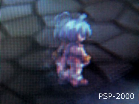 Malgré le démarrage hallucinant des ventes de la nouvelle PSP - la version "3000"- au Japon, de nombreux acquéreurs de la portable de Sony, commencent déjà à pointer un doigt accusateur sur le hardware de la console, et plus précisément sur l'écran, qui devait justement être l'élément le plus novateur de la machine. Sur les forums officiels de la firme aux USA, les plaintes se multiplient, allant jusqu'à faire réagir dans un premier temps Sony Computer Japon. Les raisons de la colère : le contraste saisissant dont on nous a rebattu les oreilles, et qui devait enterrer la version PSP-2000, alors qu'il est en fait totalement buggé, dès lors qu'on le met en route. En effet, les images, agrandies ici sur Disgaea, montrent un entrelacement exagérément visible sur la PSP-3000, tandis qu'elle est quasi-inexistante sur la PSP-2000.