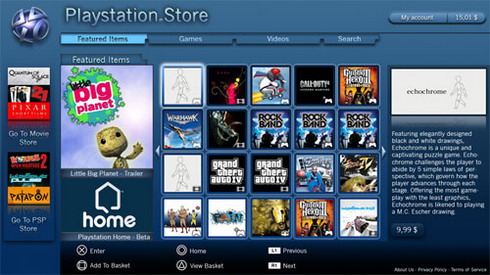 Le truc c'est qu'aujourd'hui on a reçu une image. Une image de ce à quoi pourrait bien ressembler ce fameux nouveau PlayStation Store ! Sauf que voilà, je vais être franc : même si le tout se montre plutôt classe et ressemble à ce que nous annoncions, il subsiste quelques doutes sur la véracité de l'histoire. A commencer par de bêtes erreurs de typo. Chez Sony par exemple on écrit "PLAYSTATION", ou bien "PlayStation"... mais pas "Playstation.Store". Etrange. Idem pour LittleBigPlanet qui s'orthographie ici avec des "espaces" alors qu'officiellement, il n'y en a pas. Trois fois rien me direz-vous. C'est sûr, mais ça m'a mis la puce à l'oreille. Du coup en attendant la confirmation de Sony, le suspens plane donc encore un peu sur ce... PlayStation Store 2008.