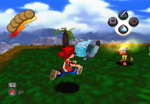Mais restant muré dans l'arrogance de son leadership terrestre, l'Homo Sapiens prend la décision de n'envoyer que deux sales mioches (Spike et Buzz) tout pourris pour tenter de contrer les plans élaborés de conquête simiesque de nos dangereux petits singes fraîchement dotés de la faculté de raison. Équipés d'une vulgaire petite épuisette, l'homme pense neutraliser le macaque en utilisant des procédés d'un autre âge, histoire de se mettre au niveau de l'animal, qu'il considère comme bien plus inférieur. Moins agile que le singe, très vite, l'humain va mieux saisir la mesure de la menace qui pèse sur son engeance et n'aura d'autre choix finalement que de faire péter du processeur, en utilisant du matos furieusement plus high-tech sponsorisé akihabaranews pour les capturer tous. Ape Escape nous dévoile en grande pompe que le point faible de l'être humain provient de son auto-suffisance et son laxisme dus à sa haute estime qu'il a de lui-même. Mais aussi de tout le phénomène anthropomorphique culturel qu'il a créé à travers son œuvre disneyienne contre-nature, qui n'a fait que souffler un vent de révolte chez l'animal, lui faisant prendre conscience de sa misérable condition. Bref, la moralité de cette œuvre vidéoludique illustre une blague philosophique foireuse qu'aimait sortir mon prof en se gargarisant d'un rire étouffé de vieille chèvre centenaire, et qui se résumait à cet énoncé : « L'homme dit au singe : parle, j'automatise ». Le jeu de mots dément reposant dans le « j'automatise », qui peut s'entendre je « t'hommatise », c'est-à-dire je te rends « homme ». Humour. Enfin, je crois...