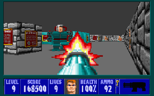 ID Software s'attaque à la déconstruction du mythe de l'acteur américain Charlie Chaplin dans Wolfenstein 3D en explorant ses facettes les plus noires. En effet, ce doom-like autobiographique et plutôt bien achalandé, retrace de manière vidéoludique la sombre période du MacCarthysme, une sorte de super chasse aux gauchos sur le territoire amerloque, où "Chaplin" se retrouve accusé (et acculé) d'accointances exacerbées avec le communisme, en 1947. Ce qui provoque son exil vers les contrées bavaroises de l'Europe en 1952. Très vite, à la manière du roi de la pop, il se construit son propre ranch de Neverland, installant sans complexe son univers très kitsch : un immense château à la déco Damidienne très axée sur les voilages, qu'il a très sobrement baptisé « Castle Wolfenstein ». Dans le soft, on incarne un chien du libéralisme à la solde des États-Unis sous les traits de BJ Blazkowicz, un soldat US dont la mission consiste à dérober des documents secrets enfermés dans le castelet embourgeoisé du sieur Charlot, qui prouveraient son réel dévouement au culte satanique et subversif de Karl Marx. De là commence alors une longue excursion immobilière à l'architecture interlope, ponctuées de rencontres musclées avec les nombreux serviteurs de la star du cinéma muet, qui crèchent également dans les lieux et sont visiblement, de fervents adhérents de la NRA.