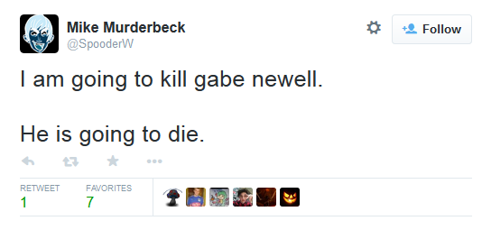 Maulbeck s'illustre en déversant son mépris, tout en évoquant "l'incompétence" de VALVe, jusqu'à ce tweet de menace de mort... effacé par la suite :