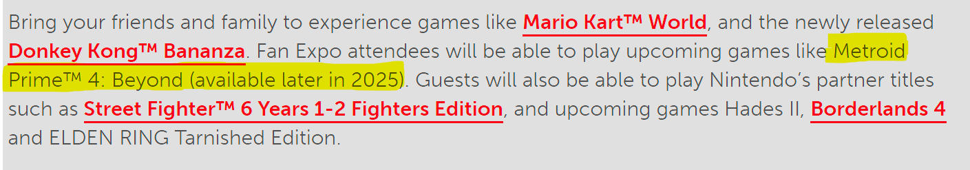 C’est dans un post sur son site officiel que la nouvelle est tombée. En invitant les joueurs à découvrir quelques exclusivités au Fan Expo Canada à Toronto, Nintendo en a profité pour glisser une info rassurante : Metroid Prime 4 sera disponible courant 2025. C’est donc une certitude désormais, le FPS arrivera dans les prochains mois sur Nintendo Switch 2 et la première du nom. En revanche, on ne sait pas encore exactement quand. La date de sortie précise sera assurément donnée ultérieurement au détour d’un nouveau Nintendo Direct. Après tout, la Nintendo Switch 2 n’a clairement pas tiré toutes ses cartouches. D’autres surprises arriveront d’ici la fin de l’année, soyons donc patient.
