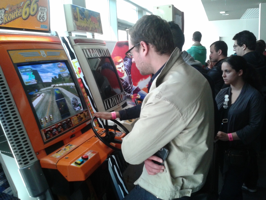Plus loin encore, des bornes d'arcade sont exposées et quelques adolescents s'excitent sur des jeux de tirs cultes comme Time Crisis.