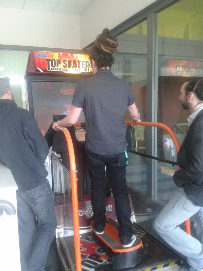 A coté, deux jeunes rivalisent sur Windjammers, bijou de la Neo Geo. Secrètement, je les envie.