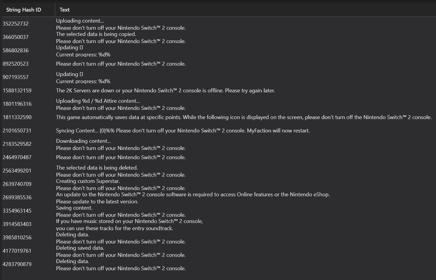 Tout part d’une nouvelle mise à jour de WWE 2K25 sur PC. En fouillant dans les fichiers du jeu, un certain Sangral est tombé sur une section dédiée à la version Nintendo Switch 2. C’est une nouvelle en soi, car cela voudrait dire, sans trop se mouiller, que le jeu de sport est bel et bien prévu sur la nouvelle console hybride de Nintendo.