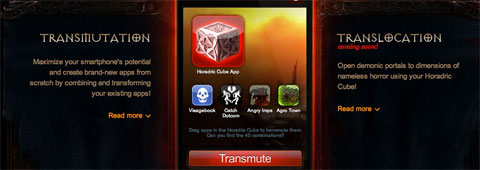Enfin, du côté de l'univers de Diablo III c'était un application smartphone permettant de transmuer d'autres applications pour en créer de nouvelles par le pouvoir des Horadrims et il était même possible de l'essayer en ligne.