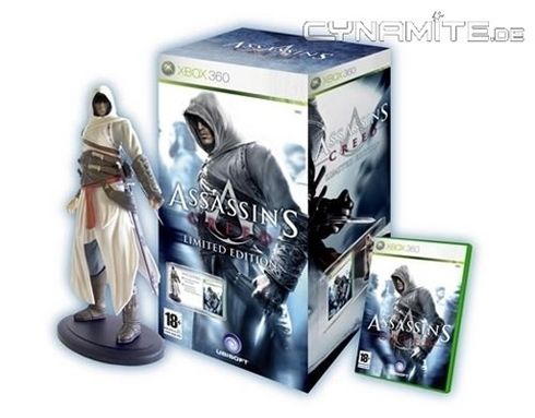 Rien que pour vous autres, les gentils n'enfants adorateurs de jeu vidéo, nerds de tous poils, geeks ouf' malades ou tout simplement bourgeois gentilhommes, voici l'image de la version Collector Xbox 360 d'Assassin's Creed, promise par Jade Raymond elle-même. On y trouvera donc : une figurine d'Altair de 3 pouces, un Comics Penny Arcade, un mini-guide Stratégique, et un Disque Bonus incluant des tas de trucs que vous pouvez lire ICI, si vous avez la force de cliquer. Rappelons que le jeu est prévu chez nous le 9 novembre prochain sur Xbox 360 et PS3. Le PC, plus tard. Merci au site Cynamite.de. Encore du travail de pro.