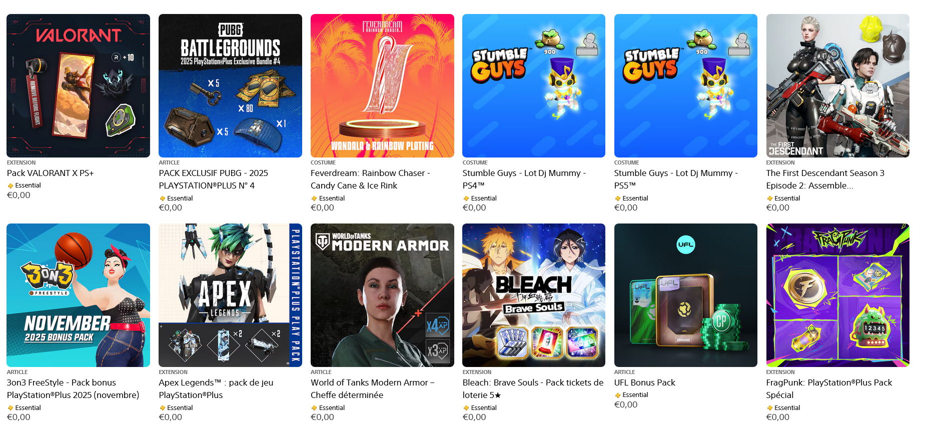 - FragPunk Pack Spécial PS Plus : il comprend 500 FragPunk Coins, 1000 Or, 10 Packs d’Autocollants Basiques, 5 Cartes à gratter Curiosité et 1 Télécommande Slime Fiend. Vous avez jusqu’au 30 janvier 2026 pour récupérer ce cadeau.