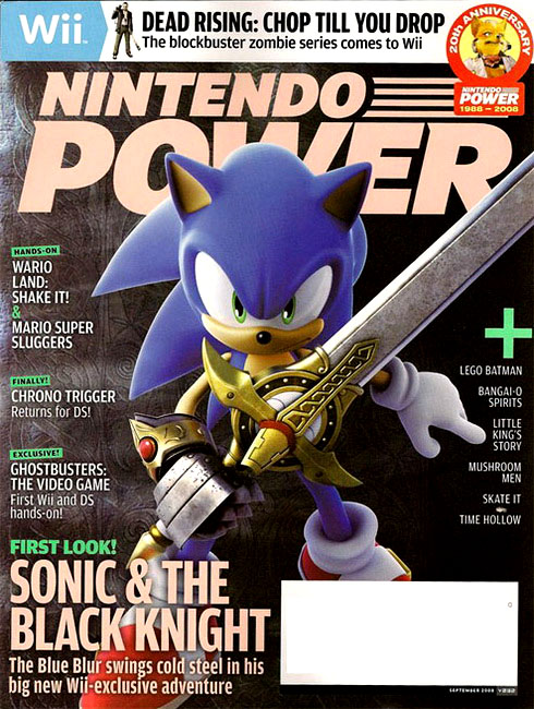 La couverture du dernier Nintendo Power révèle l'existence d'un nouveau jeu estampillé Sonic : Sonic & the Black Knight... On ne sait absolument rien de plus à son sujet pour le moment, mais bon, vu le visuel et vue l'accroche qui l'accompagne, on en déduit sans peine qu'il s'agira d'incarner un Sonic expert en maniement d'épée, et de mimer des mouvements d'escrime à la wiimote... certainement dans le style Red Steel ou Dragon Quest Swords... Un truc super raccord avec l'univers de Sonic, quoi !