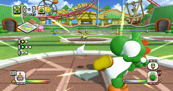 Bon alors là, je suis dans le caca. J'ai déjà tout dit ou presque sur l'annonce de Super Mario Stadium Baseball dans la news de ce matin, et à part que c'est prévu pour 2008, il n'y a rien d'autre à ajouter. Qu'est-ce que je vais bien pouvoir vous raconter ? Ah si tiens, ils auraient peut-être dû annoncer Super Mario Rugby, plutôt, pour changer et se mettre à la page. Avec Bowser dans le rôle de Chabal. Ce serait marrant un jeu où l'on pourrait cavaler avec un ballon de rugby en collant des caramels avec la wiimote... non ? Bon oké, je me tais, voici les photos :