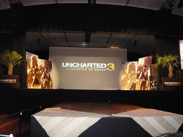 Julien Chièze entre alors sur scène et introduit le sujet en présentant Christophe et Alexis et en nous proposant une vidéo sur les studios Naughty Dog. Nous avons alors droit à une petite featurette sur le studio, à la manière de celles qu'on peut trouver dans les bonus des DVD. Après ces quelques minutes d'intermède, Christophe Balestra arrive sur scène et est évidemment désolé de l'incident technique. Nous le sommes aussi mais c'est la vie. Julien Chièze lui pose ensuite quelques questions grâce auxquelles on apprend que le studio compte actuellement à peu près 90 personnes travaillant sur Uncharted 3 et que le trailer présenté ce déroule dans un château français. Ce n'est même pas une idée de Christophe mais d'Amy Hennig, creative director et scénariste chez Naughty Dog et auteure des scénarii d'Uncharted mais aussi réalisatrice et scénariste de Legacy of Kain : Soul Reaver, Soul Reaver 2 et Defiance. Un sacré CV tout de même. C'est elle qui a souhaité que Nathan voyage en France, en Grande-Bretagne et dans le désert, ceci en s'inspirant de la vie de Lawrence d'Arabie.