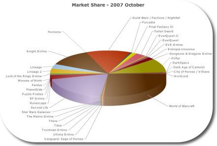 Les "derniers chiffres" des parts de marché des différents MMO (ou "presque" MMO) sont disponibles chez Voig.com. Personnellement, je n'irais pas par quatre chemins pour dire qu'ils sont un peu biaisés. Voire merdiques. Oui oui, merdiques. Coller Second Life en seconde place signifie qu'ils totalisent les inscrits et non les joueurs (les chiffres réels de ce "truc" étant plus proches de EvE Online que de WoW). Et ça m'agace vraiment tout ce foin autour d'un produit aussi naze. Il fallait que je le dise. Voilà. Vous pouvez reprendre une activité normale.