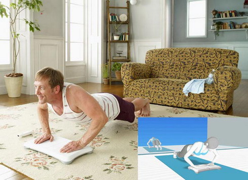 "Balance... balance... balance-toi" l'hymne de Wii Fit composé avec talent par Tony P. Avec ici en photo, papy/sosie Daniel Craig en plein exercice pour le prochain James Bond. Superbe. Ou pas.
