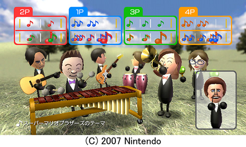 Avec le carton Guitar Hero, l'attaque Rock Band, le retour de Konami sur le secteur par l'annonce de Rock Revolution... il ne manque guère que Nintendo pour contribuer au raz-de-marée du jeu musical. Il y a bien longtemps déjà, alors que le monde entier découvrait la Wii à l'E3, un jeu de musique fut illustré, wiimote en guise de baguette, par Miyamoto himself... Il semble que Wii Music, puisque c'est ainsi qu'on l'appelle, fasse à nouveau parler de lui. Originellement prévu pour 2007, le titre avait disparu des plannings, et s'est toujours fait extrêmement discret. C'est par l'intermédiaire d'un site coréen qu'on découvre ces nouvelles informations :
