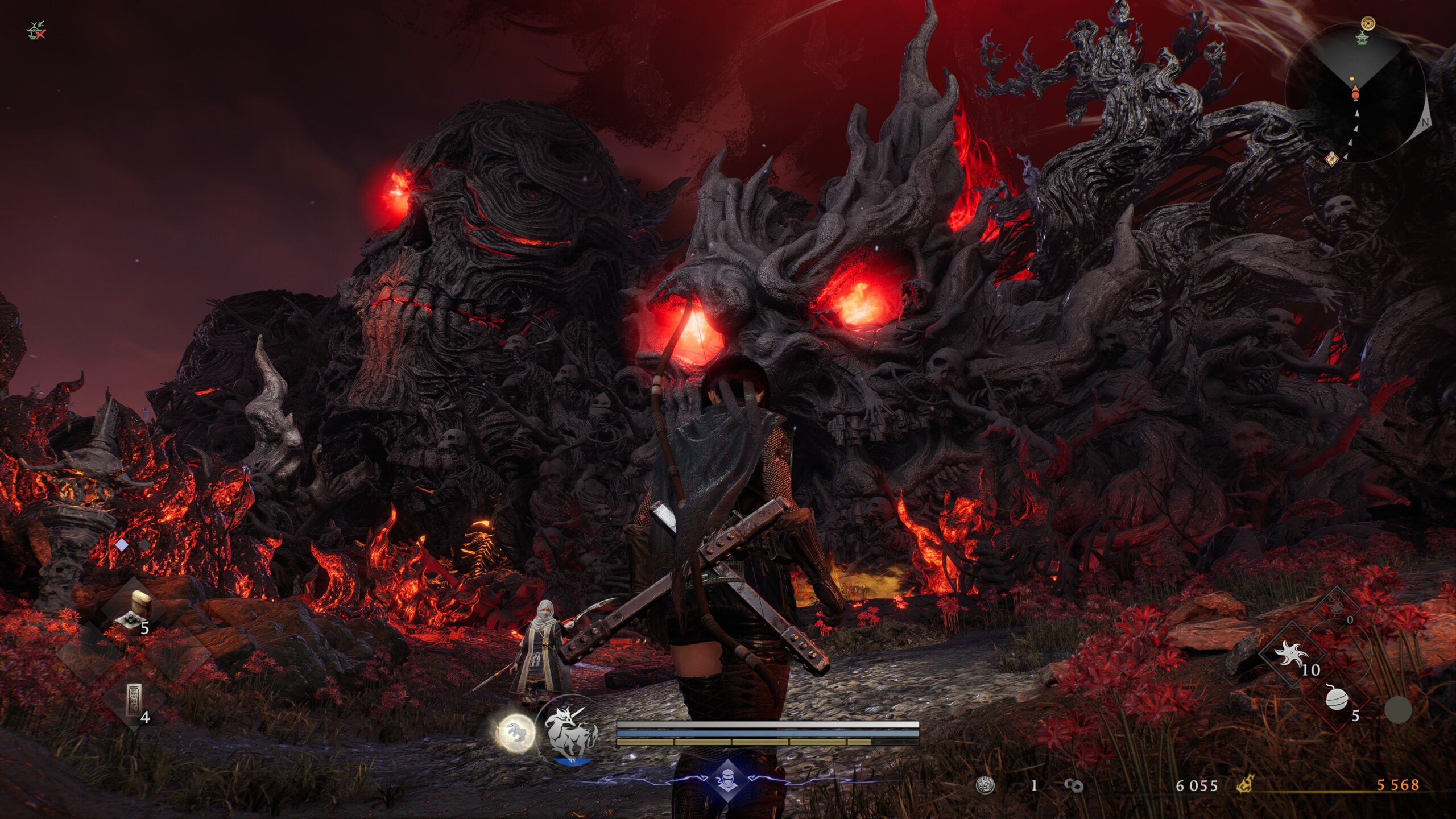 Le character design est saisissant, les artistes à l'œuvre n'ont plus besoin de faire leurs preuves depuis longtemps et pourtant, ils semblent vouloir mettre la barre encore plus haut. Outre des généraux aux armures ultra-détaillées, on affrontera de très nombreux monstres colossaux, aussi impressionnants que charismatiques. Il va sans dire qu'ils sont redoutables et donnent de grosses suées. Je vais être honnête : certains m'ont posé de vrais problèmes, m'obligeant à faire plusieurs essais pendant de longues, très longues minutes. Et que dire du Purgatoire, qui porte vraiment bien son nom ? Il s'agit d'une zone qui apparaîtra à plusieurs reprises durant notre périple et qui est l'une des choses les plus punitives que j'ai pu voir dans un souls-like.
