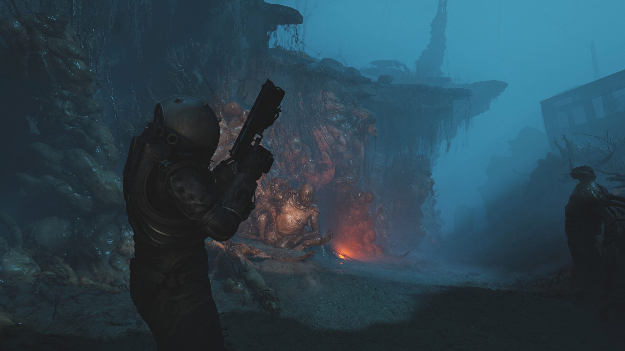 Au premier abord, Cronos The New Dawn rappellera quasi instantanément Silent Hill 2 Remake. Perdu au milieu d’une ville froide et délabrée, en plein brouillard. Le jeu se démarque toutefois rapidement par son univers bien plus chaotique et post-apocalyptique, très bien retranscrit. Le brutalisme de ces paysages froids d’Europe de l’Est est ici déchiré, destructuré. Les stigmates du cataclysme ayant conduit l’humanité au désastre sont encore bien présents et c’est parfois même impressionnant. Si elle semble moins inspirée et surtout plus timide que sur The Medium, par exemple, la direction artistique n’en reste pas moins une belle réussite. Et ce n’était pas chose aisée tant les environnements auraient pu se ressembler sur le papier. Tout se passe globalement dans la même région, mais Bloober Team a tout de même réussi à se renouveler tout en arrivant à créer systématiquement une atmosphère anxiogène de plusieurs façons différentes.