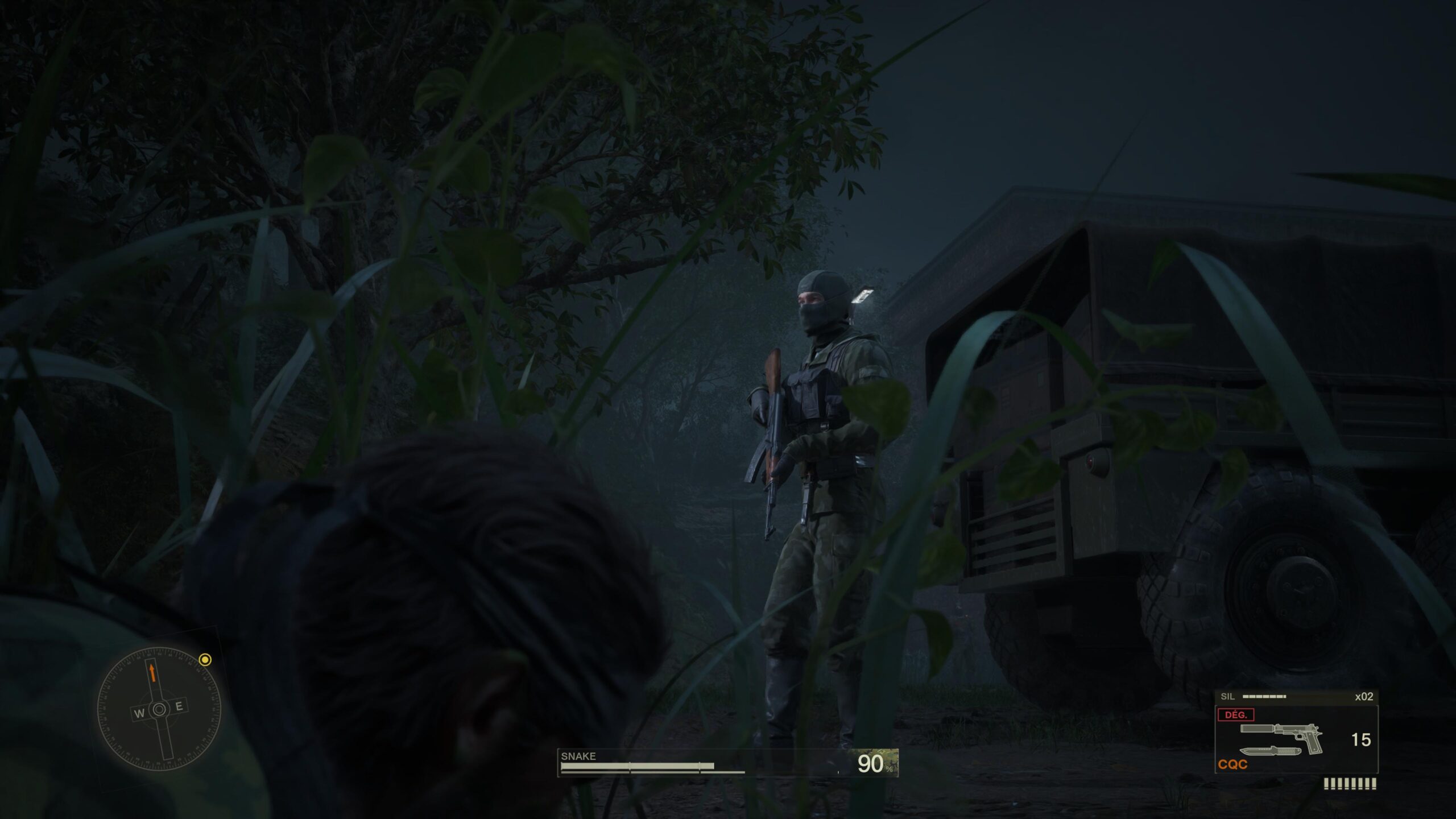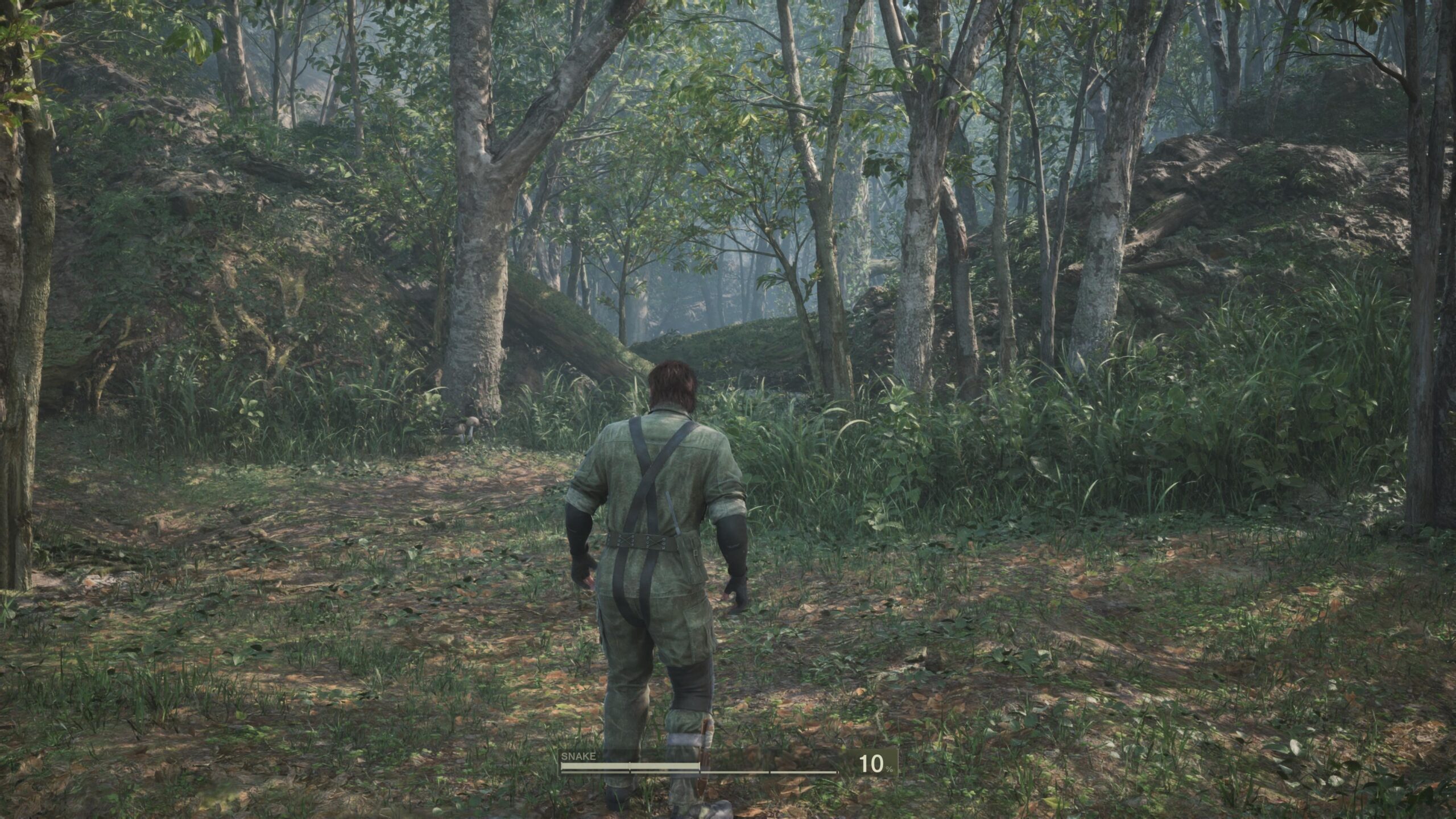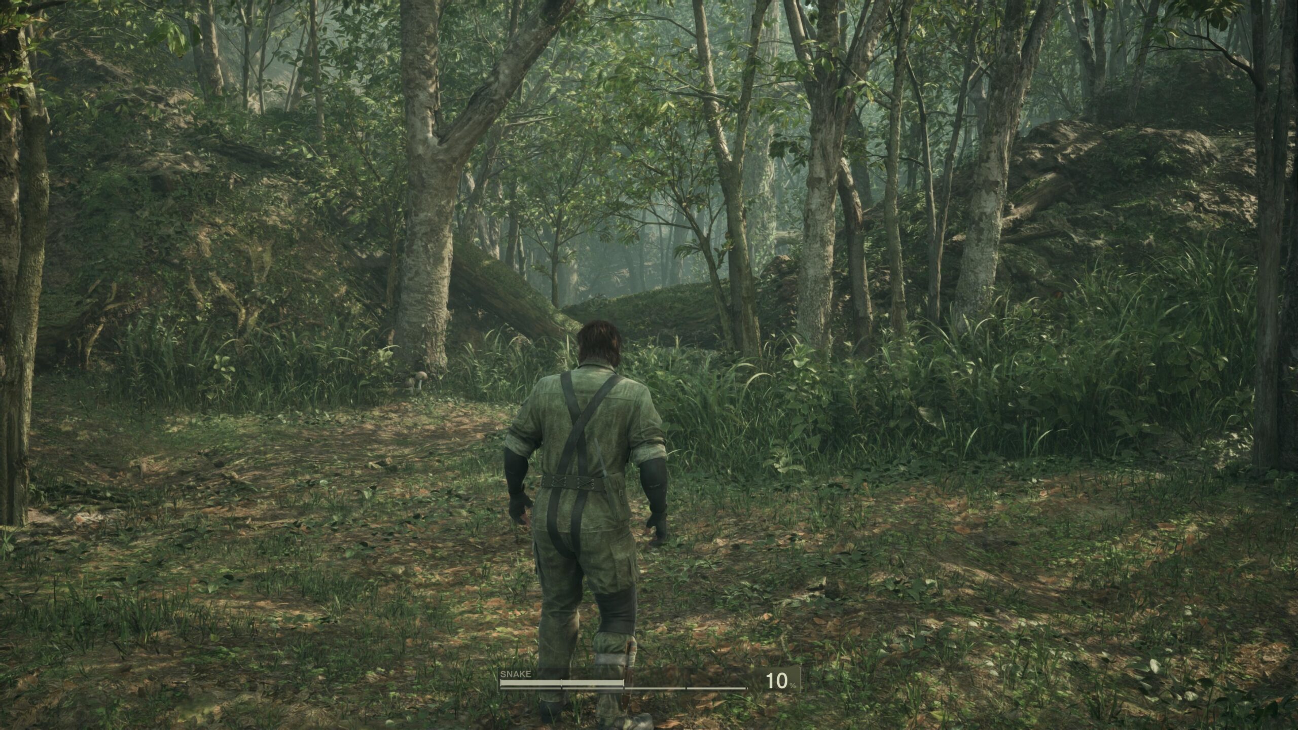 Certaines imprécisions sont aussi notables quand on veut se plaquer contre un arbre ou un mur un peu petit, puisque Snake semble plus glisser qu’autre chose et trouve même le moyen de ne simplement pas se coller aux parois. C’est dommage, parce qu'à part ces rares inconvénients, Metal Gear Solid Delta est très plaisant à vivre. Certains vieux de la vieille pesteront peut-être sur le fait qu’offrir une vue à la troisième personne aussi fluide et permissive, avec de nouveaux mouvements comme le fait de pouvoir ramper dans différentes positions, rend le jeu plus facile surtout lors des affrontements. À cela je répondrai qu’il suffira d’augmenter la difficulté d’un cran pour se rendre compte que Snake n’est pas Rambo, loin de là. Les gunfights ne sont pas spécialement recommandés et, au-delà du mode Normal, peuvent même être vraiment problématiques. De toute façon, les sensations globales de tir ne sont pas incroyables, et de toute manière, il n’y a vraiment que l’infiltration qui compte. Et là-dessus, le fait de pouvoir se mouvoir avec plus d’aisance, ou de viser de différentes façons, offre plus de possibilités. C’est donc une très bonne chose.