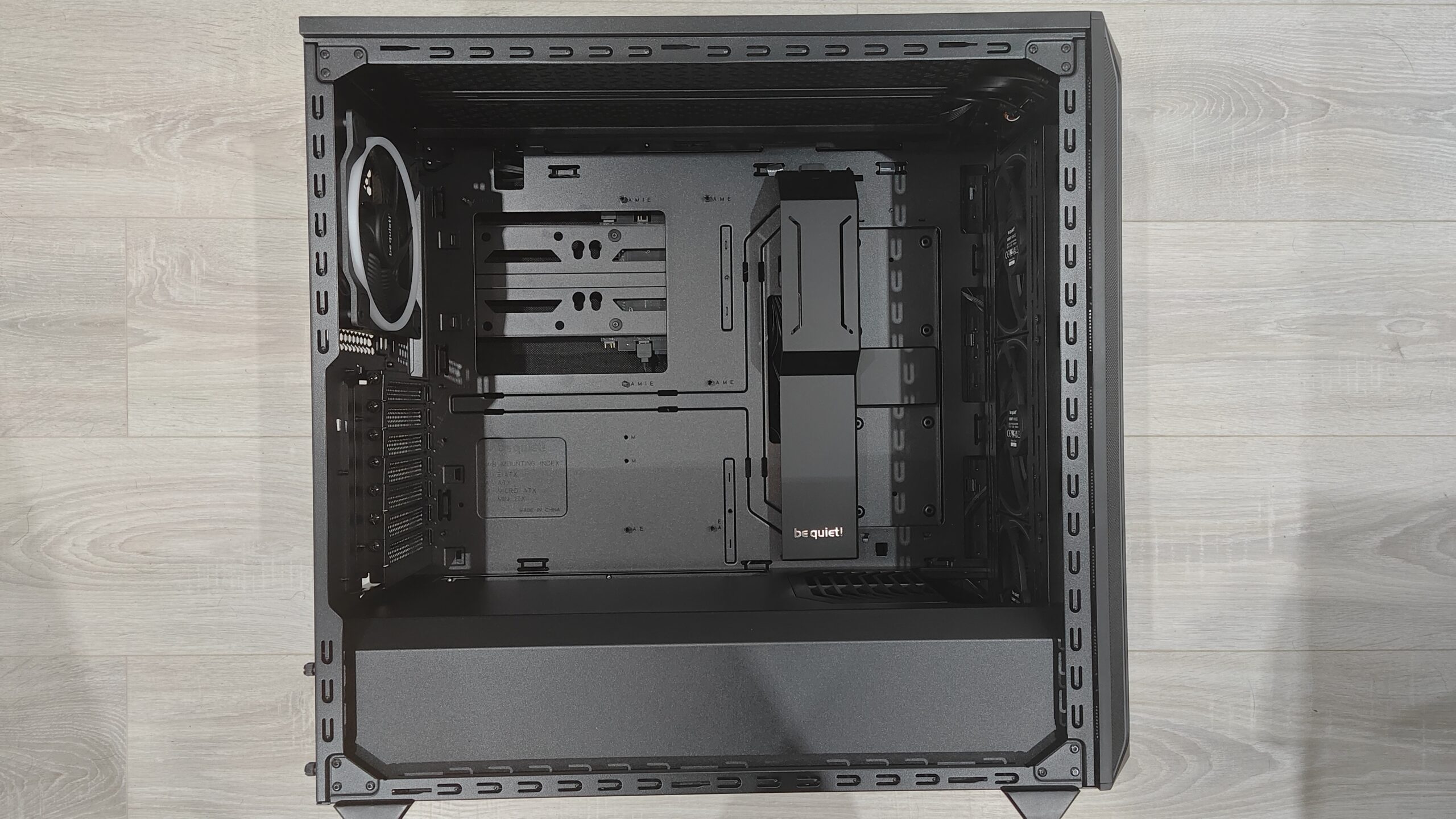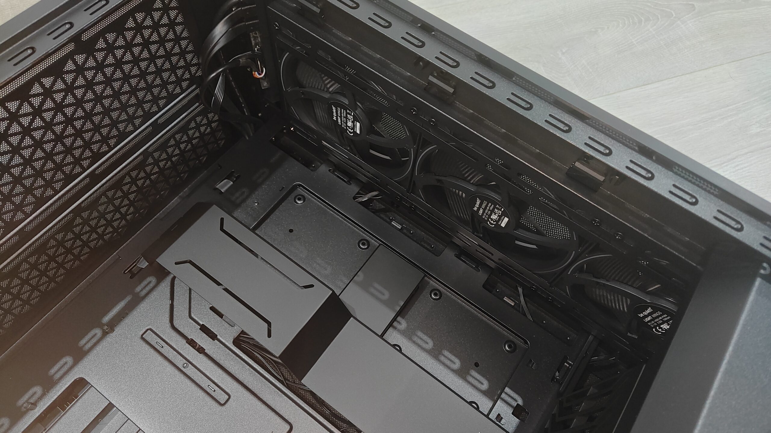 À l'intérieur, le boîtier est également extrêmement spacieux et vous permettra d’y enfermer les composants les plus massifs du moment, comme les gigantesques E-ATX ou encore les colossales RTX 4070 Ti, 4080 ou encore l'énorme 4090, pour ne citer qu’eux. Compartimenté en un espace principal et un espace secondaire pour l’alimentation et le stockage supplémentaire, le boîtier laisse nativement près de 430 mm d’espace pour la carte graphique (c’est énorme) et 180 mm pour les systèmes de refroidissement.